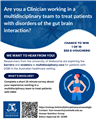 Multidisciplinary Care for Disorders of Gut-Brain Interaction (DGBI) - National Clinician Survey This study aims to understand clinician perspectives on the enablers and barriers to delivering multidisciplinary care for DGBI. What’s Involved? A short, mixed-methods online survey (approx. 15 minutes) Questions on your experience working in multidisciplinary teams to treat patients with DGBI Find out more or to complete the survey: https://redcap.link/multidisciplinarycareanddgbi CHANCE TO WIN 1 OF 10 $50 E-VOUCHERS! Questions: [email protected]Approved by the University of Melbourne Human Ethics Committee (Project ID 32399).